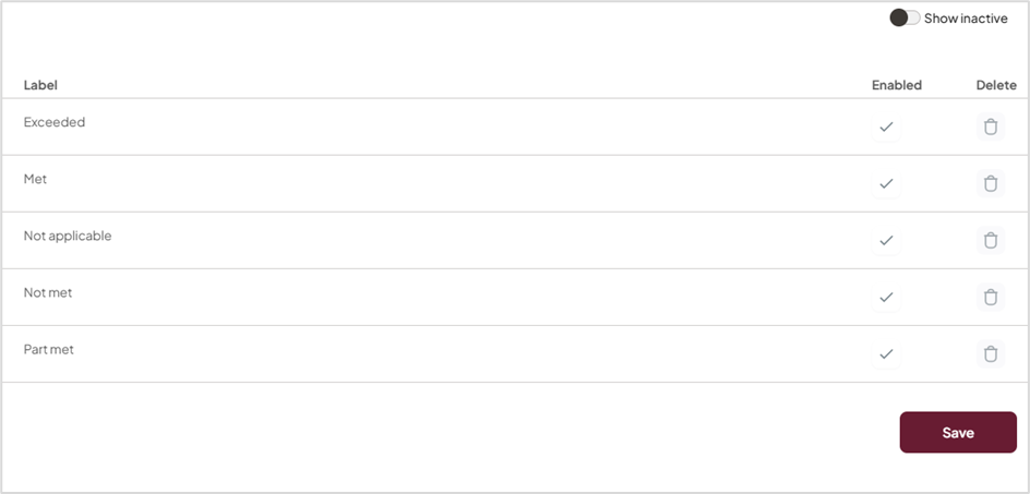 | Re-enable a Label | While Show inactive is on, check the tick in the Enabled column and click Save. |
