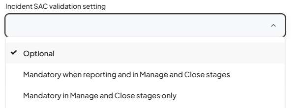 | Incident SAC validation setting |