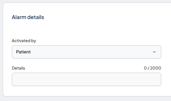 If this option is selected, an additional ‘Alarm details’ component appears on the Incident details form. This allows the user to choose from a predefined list of options and add further information in a free-text field. The ‘Activated by’ list can be configured in the Incident register menus.