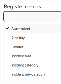 Configuring Incident Register Dropdown Menus