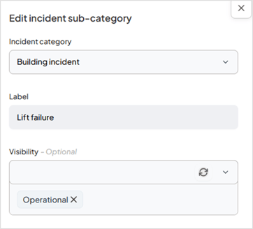 - Set Visibility: Under the Visibility section, select the specific incident area(s) where this category should be active.