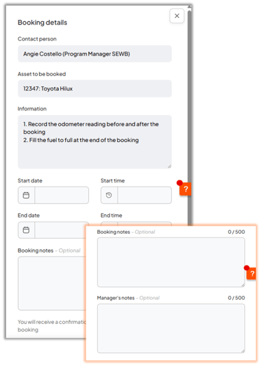 We’re pleased to announce the introduction of a highly requested enhancement to the Asset Booking add-on: users can now enter notes for the asset manager when making a booking.