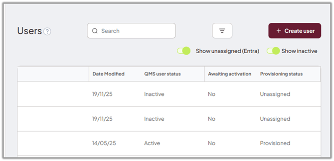 Occasionally, users who do not require a Logiqc account are mistakenly provisioned from your organisation into Logiqc. Although these users can be unassigned in Microsoft Entra, their records still remain within Logiqc. These accounts are now hidden by default, with a new toggle available should you need to display them.