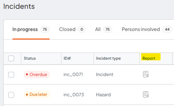 2. The downloadable Incident report