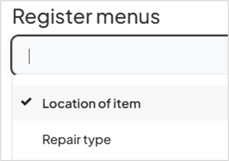 Configuring Repairs Register Dropdown Menus