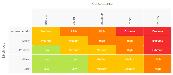 Assessment of risk is based on an analysis on its relative consequence (e.g. outcome or impact) and likelihood (e.g. chance of something happening).