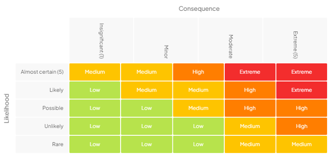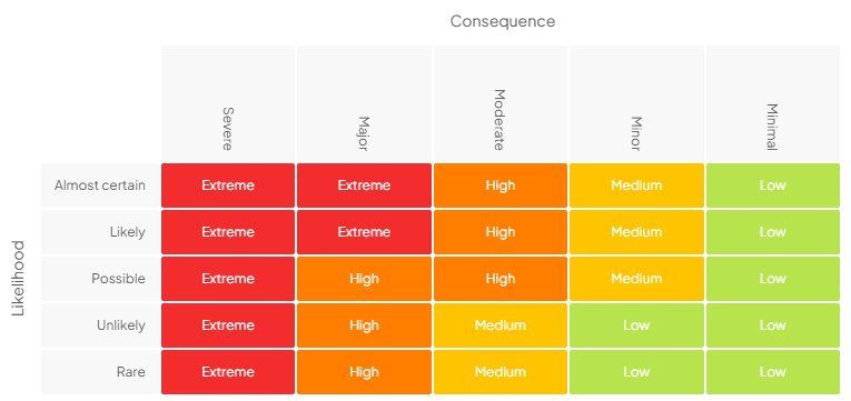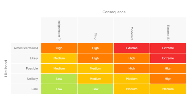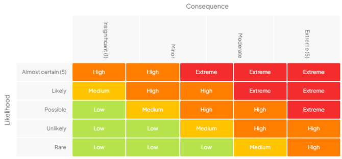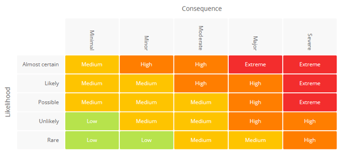 To support the assessment of risk, Logiqc provides a risk matrix as a visual and structured way for you to set the risk level.